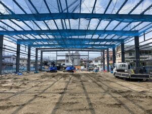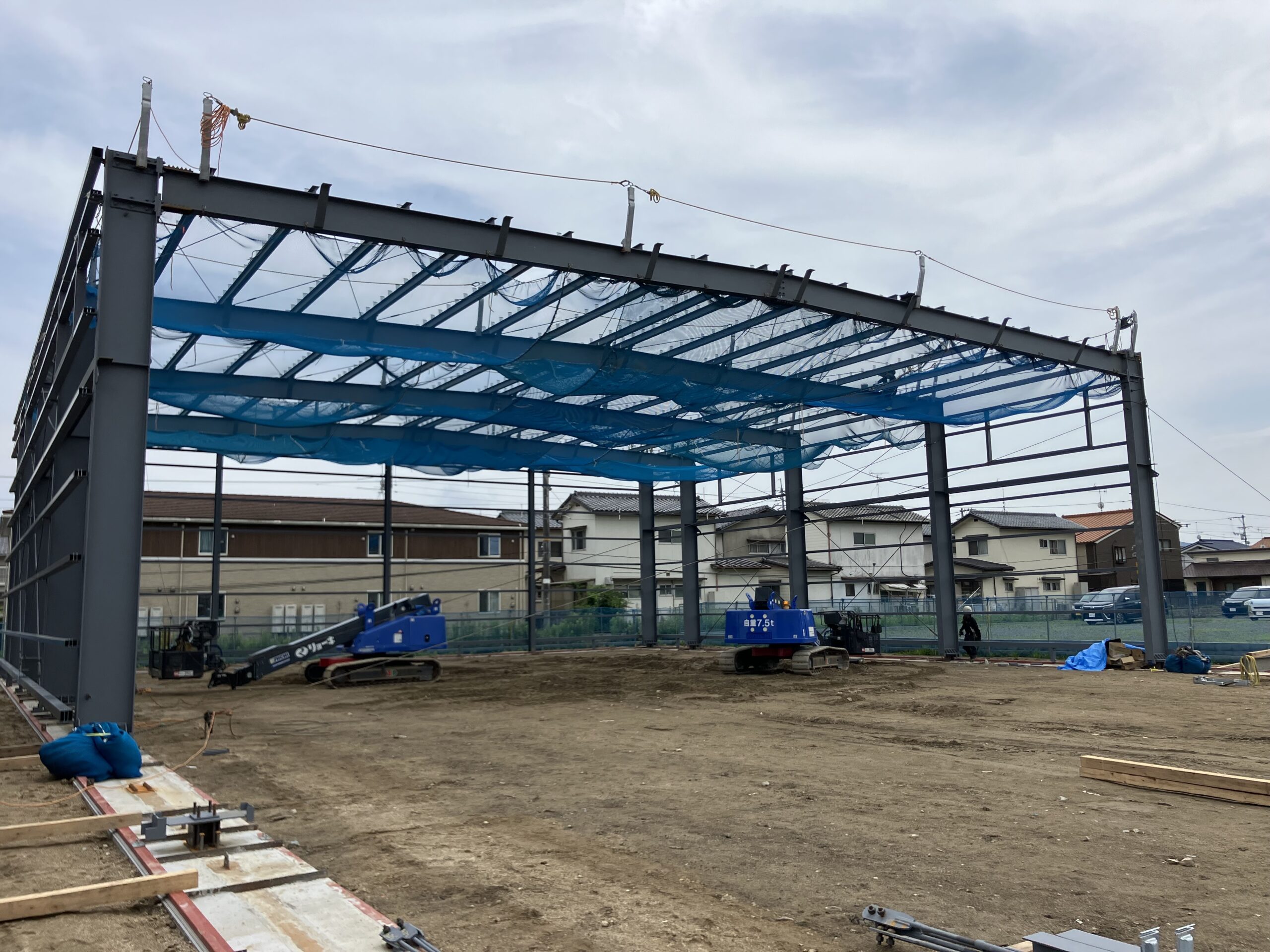 ご依頼いただきました倉庫新築工事において鉄骨工事が本格的に始まりました。
